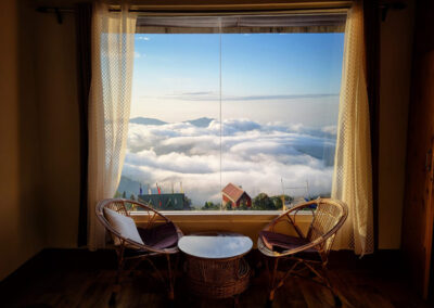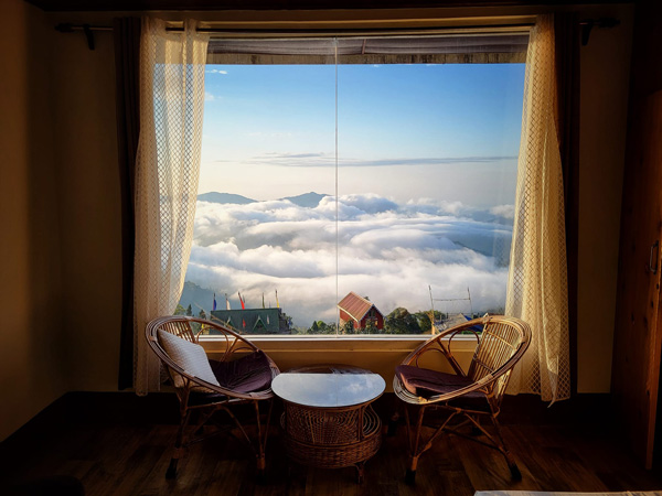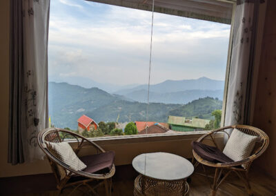 Takdah Villa is perched on one of the highest points of Takdah and offers a fabulous panoramic view of the valleys, hills, mountains and meandering rivers from room. On a clear day, you can catch a glimpse of the Teesta Valley from your room. The best thing about staying in this villa homestay is enjoying the “bird’s eye view” of the rising sun through the glass wall of your room.