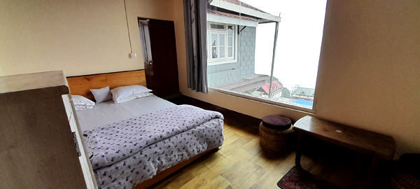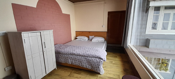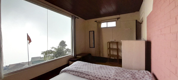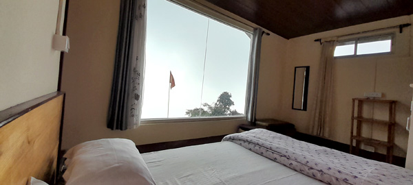 Double bed room with king size bed, attached western bathroom, glass wall. Suitable for 2 adults + 1 child (below 10 years).